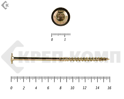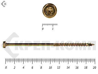 Саморезы по дереву желтые, шестигранные Torx 8х300 мм КРЕП-КОМП (50 шт)